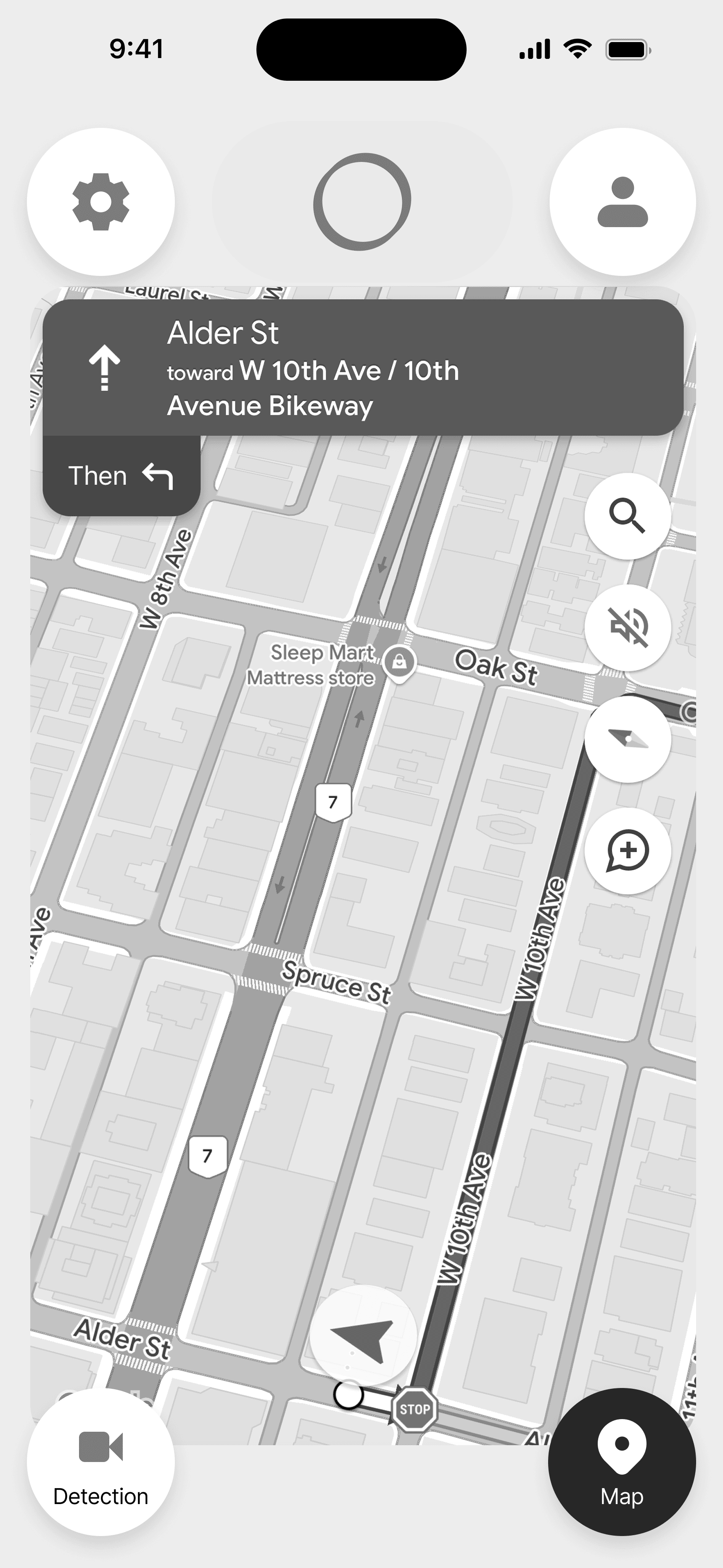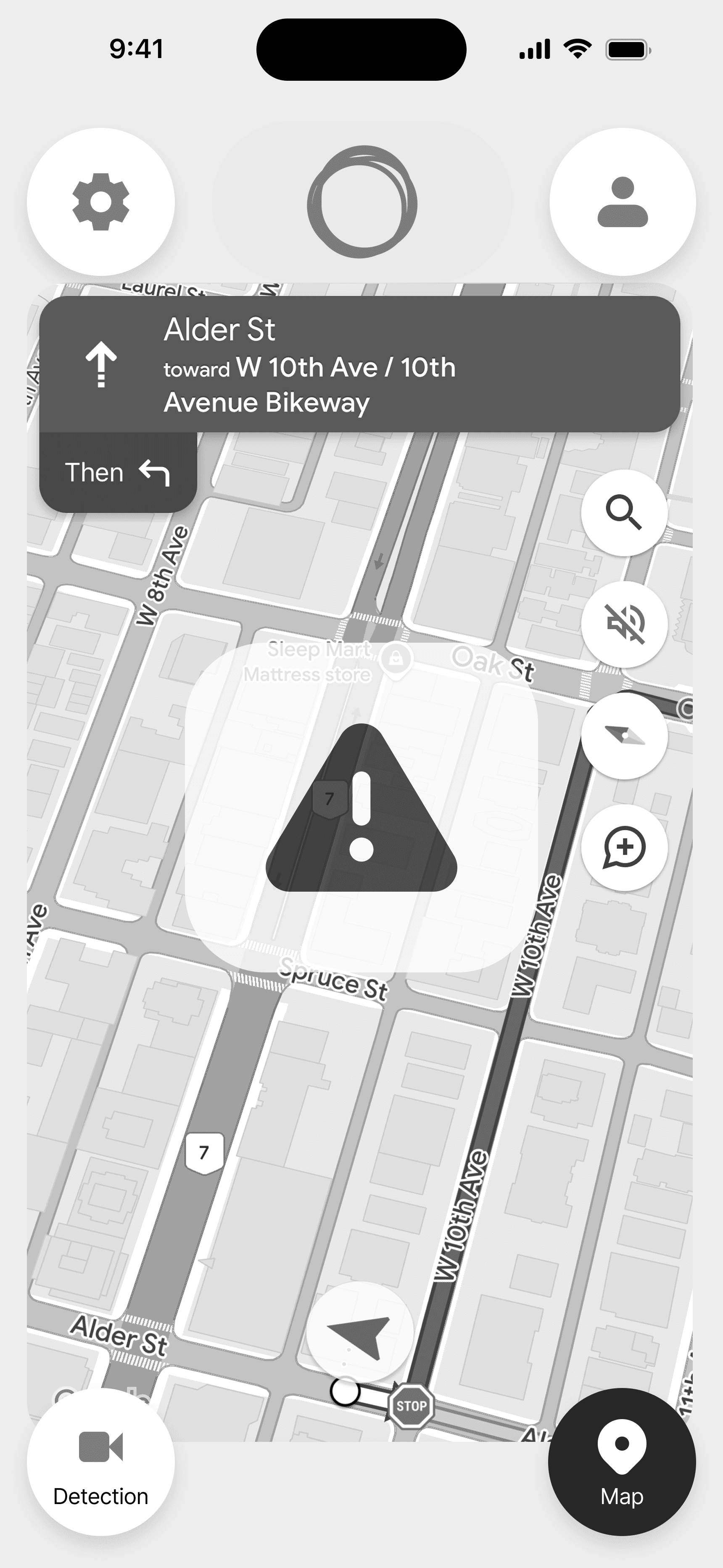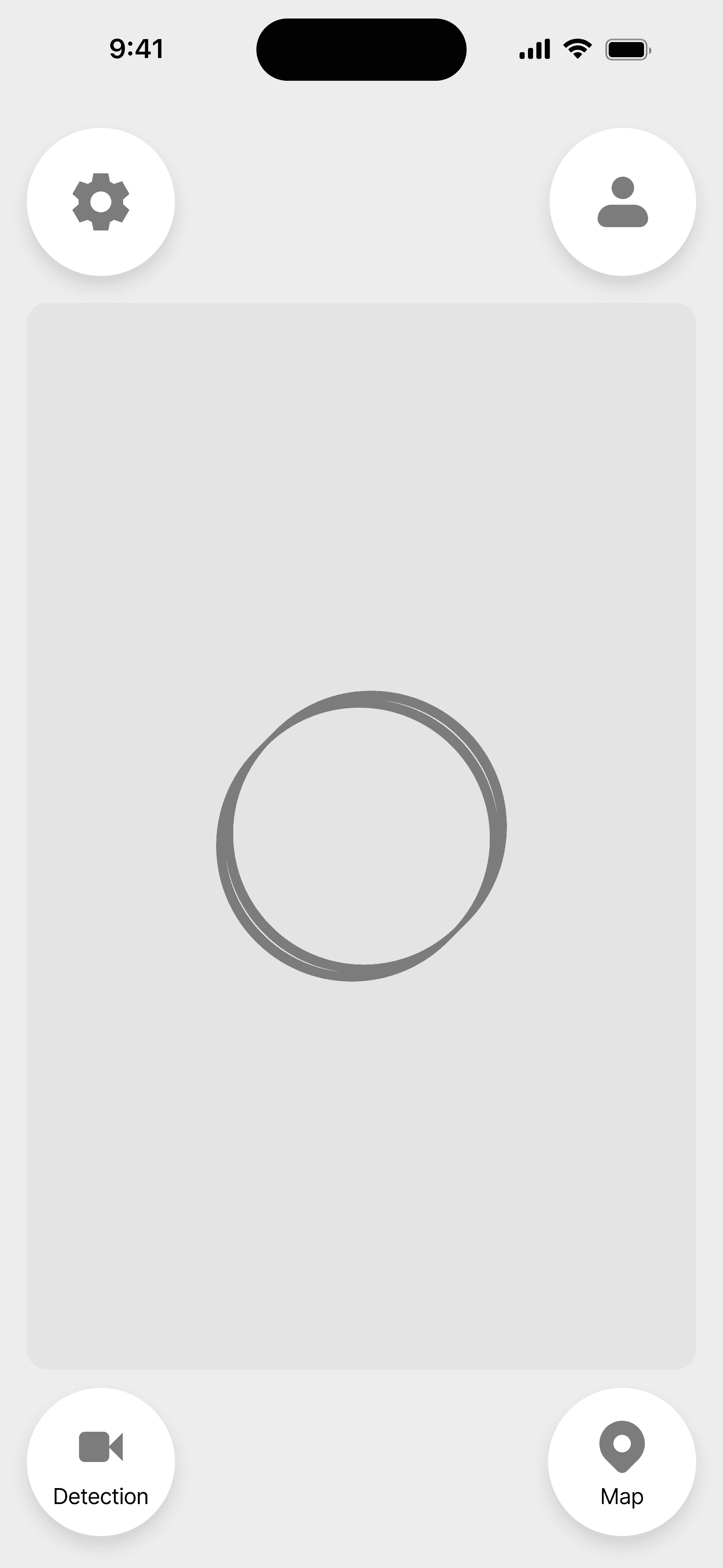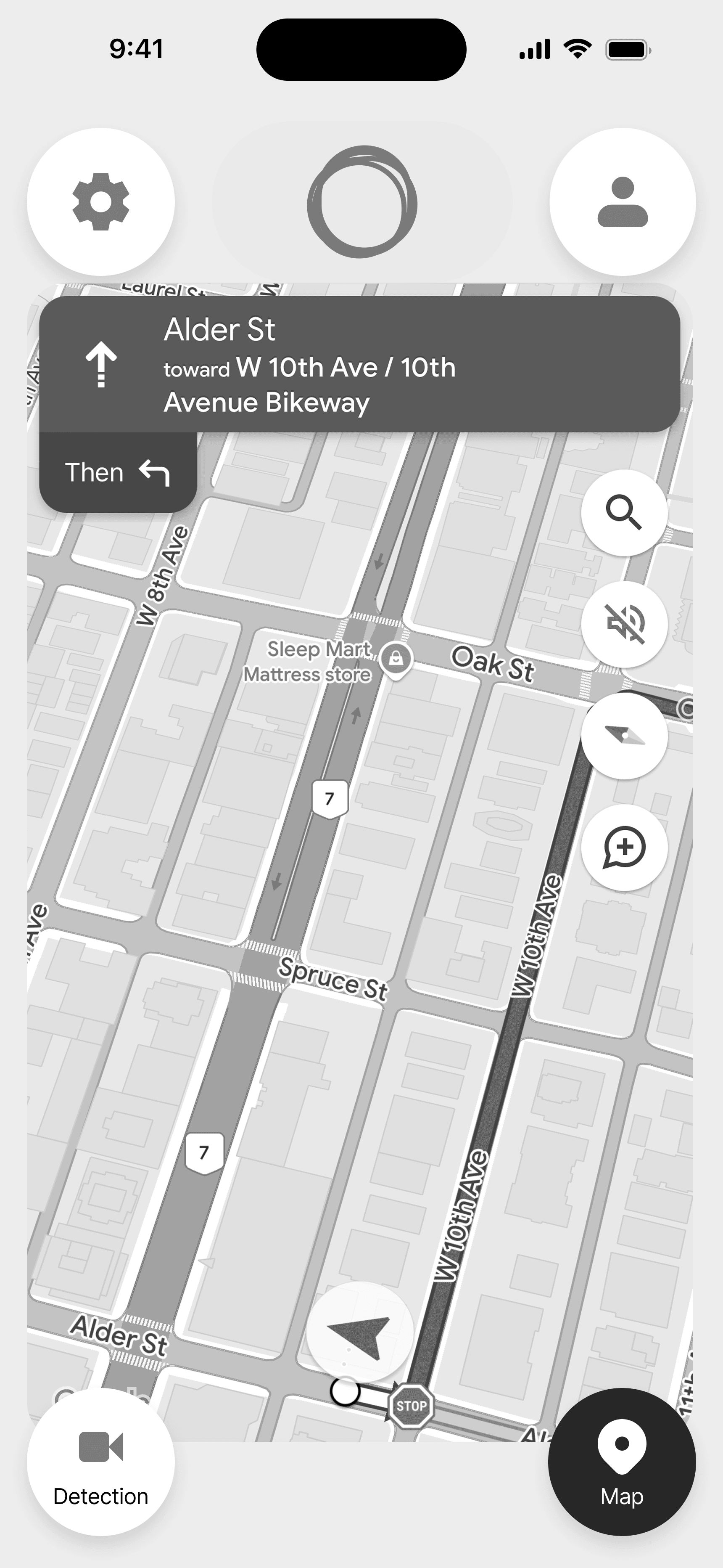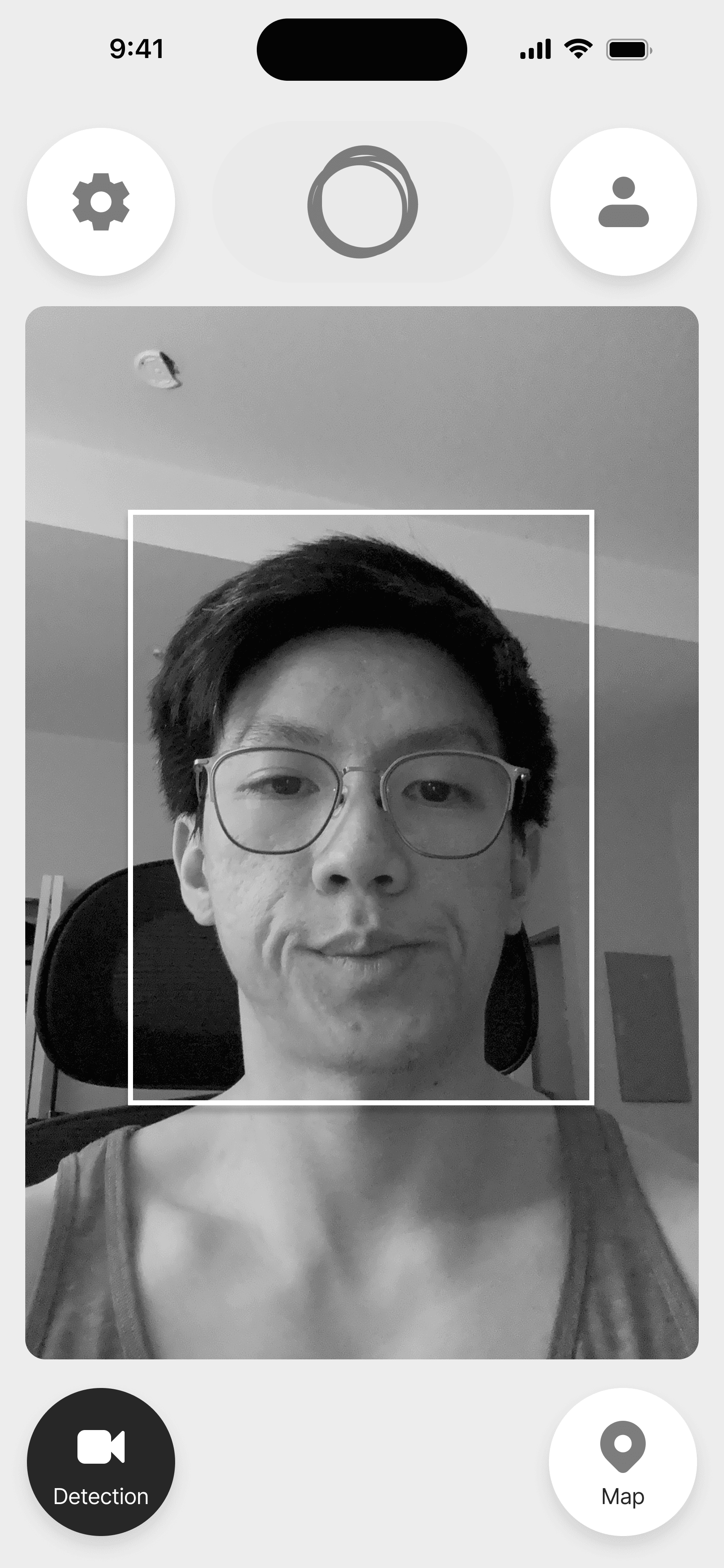For the face and eye detection interface, I felt it was appropriate to borrow the design pattern that users are familiar with when video chatting on FaceTime or WhatsApp. Users see a display of their front-facing camera, which can be shrunken or enlarged. Users can also tap the video to toggle between the camera and the map.
